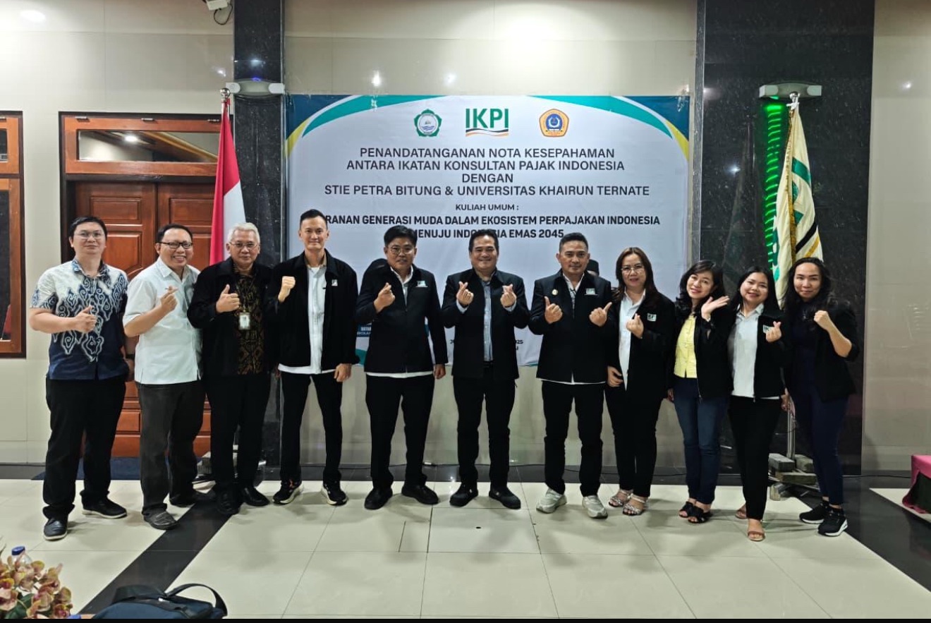 IKPI, Manado: Safari akademik IKPI di Sulawesi Utara mencapai puncaknya saat Ketua Umum IKPI Vaudy Starworld dan beberapa pengurus pusat memberikan kuliah umum di STIE Petra Bitung, Jumat (14/11/2025) disaksikan ratusan mahasiswa dari berbagai jurusan. Pada kesempatan ini, IKPI turut menandatangani MoU dengan STIE Petra Bitung serta Universitas Khairun Ternate.