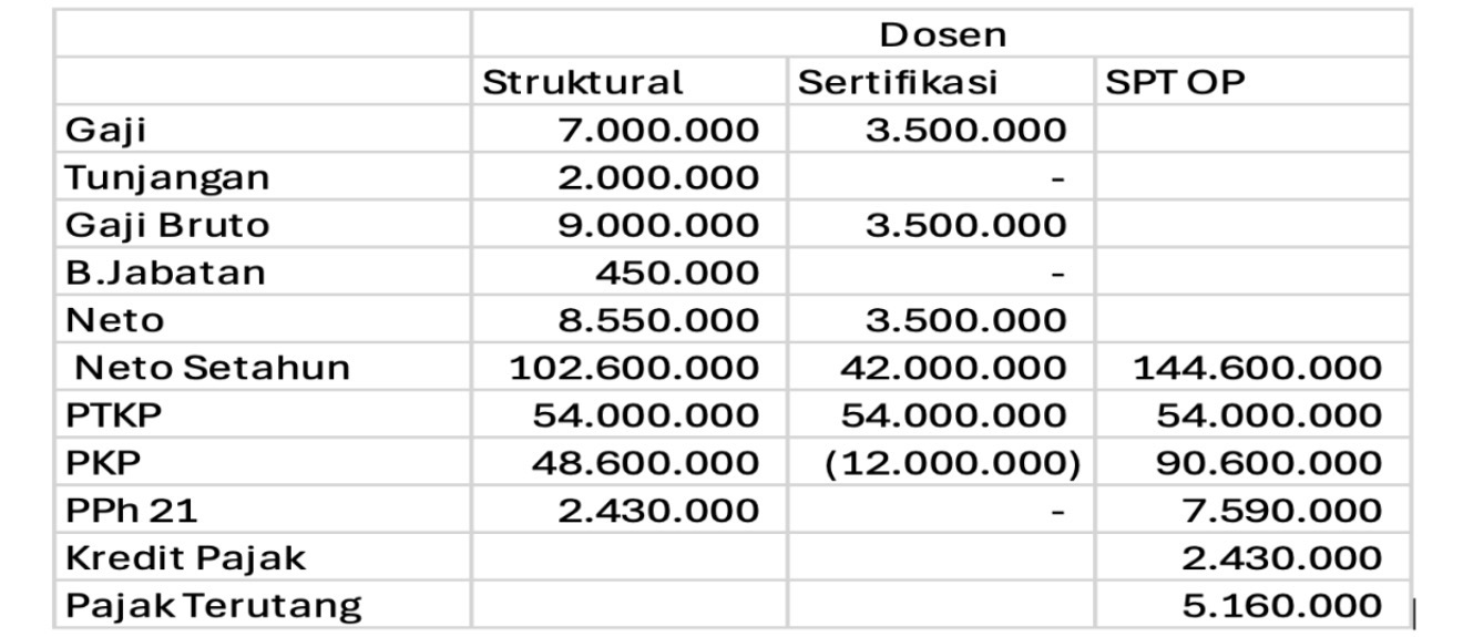 Dengan kebijakan yang lebih konsisten dan berkeadilan, diharapkan para dosen dapat menjalankan kewajiban perpajakannya dengan lebih baik, termasuk melaporkan SPT tahunan PPh orang pribadi secara tepat waktu tanpa dihadapkan pada kendala kekurangan bayar yang tidak terantisipasi.