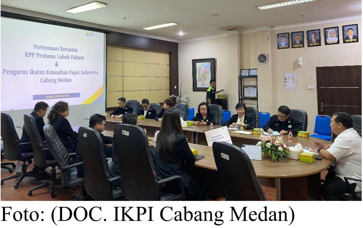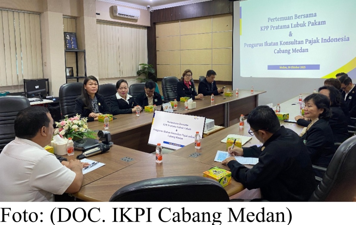 IKPI, Medan: Ikatan Konsultan Pajak Indonesia (IKPI) Cabang Medan melaksanakan audiensi dengan KPP Pratama Medan Lubuk Pakam pada Kamis, (30/10/2025). Kegiatan ini bertujuan untuk memperkuat kerja sama dan sinergi antara IKPI dan otoritas pajak dalam meningkatkan kepatuhan Wajib Pajak serta mendukung penerimaan negara. Audiensi diterima langsung oleh Kepala KPP Pratama Medan Lubuk Pakam, Bapak Daniel Zebua, yang menyampaikan pentingnya kolaborasi dengan para konsultan pajak.