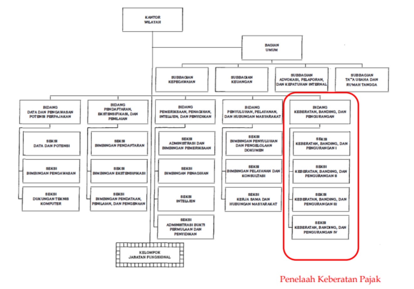 Secara organisasi, proses keberatan ditangani oleh unit di bawah Kantor Wilayah DJP. Meskipun berbeda level dari Kantor Pelayanan Pajak (KPP) yang menerbitkan surat ketetapan pajak, keduanya tetap berada dalam satu garis komando di bawah DJP. Dengan demikian, penelaah keberatan masih merupakan bagian dari lembaga yang sama dengan pembuat keputusan awal. Situasi ini menimbulkan potensi conflict of interest, karena pihak yang menilai keberatan merupakan bagian dari institusi yang memiliki kepentingan penerimaan pajak.
