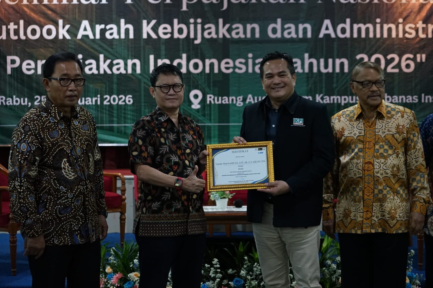 “Indonesia membutuhkan sistem perpajakan yang kuat dan kredibel. Para konsultan pajak dan akademisi memiliki peran strategis dalam membantu pemerintah meningkatkan kepatuhan dan memastikan kebijakan berjalan efektif,” ujar Prof. Haryono.